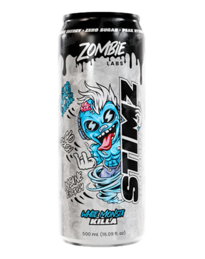 Zombie Labs Stimz Energy RTD is your ultimate on-the-go energy solution, designed to fuel your day with zero sugar, no crash, and insane energy. Available in bold, electrifying flavors like Screaming Soda, Ruthless Raspberry Lemonade, Blue Brainfreeze, Savage Sour Apple, and White Monsta Killa, this ready-to-drink formula is crafted to deliver a powerful energy boost with clean, active ingredients. Whether you're hitting the gym, working long hours, or gaming late into the night, Stimz Energy RTD has your back with an energy blend designed for focus, stamina, and performance.