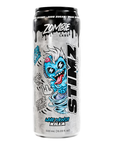 Zombie Labs Stimz Energy RTD is your ultimate on-the-go energy solution, designed to fuel your day with zero sugar, no crash, and insane energy. Available in bold, electrifying flavors like Screaming Soda, Ruthless Raspberry Lemonade, Blue Brainfreeze, Savage Sour Apple, and White Monsta Killa, this ready-to-drink formula is crafted to deliver a powerful energy boost with clean, active ingredients. Whether you're hitting the gym, working long hours, or gaming late into the night, Stimz Energy RTD has your back with an energy blend designed for focus, stamina, and performance.